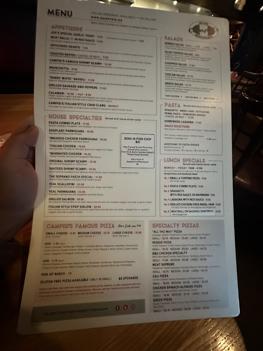 Whether you're enjoying a cozy dinner for two or celebrating with a large group, Campisi's exceptional dishes and warm service promise an unforgettable culinary experience.
